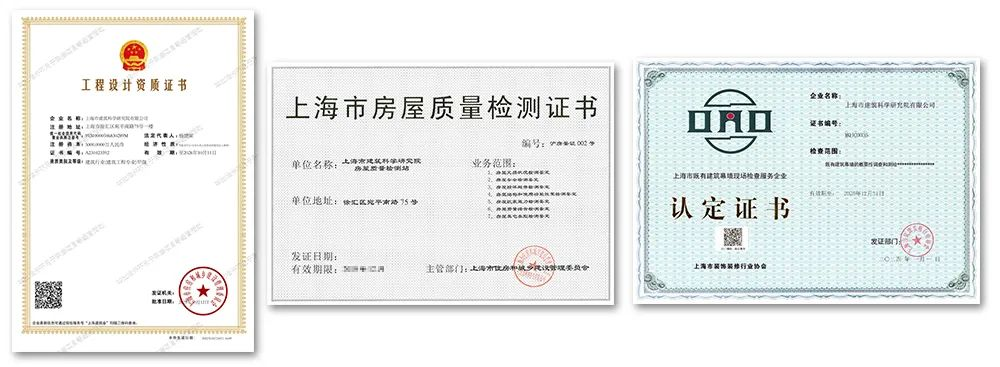 上海市建筑科學研究院有限公司始建于1958年,是國有控股上市公司——上海建科集團股份有限公司——下屬核心企業,具有建筑工程設計甲級資質、上海市房屋質量檢測證書、上海市既有建筑幕墻現場檢查服務企業認定等70余項資質和證書,通過了CMA認定和CNAS認可。