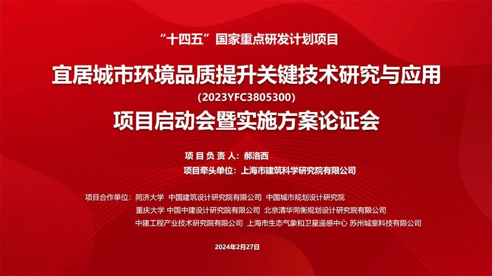 近日,上海市建筑科學(xué)研究院有限公司牽頭承擔(dān)的“十四五”國家重點(diǎn)研發(fā)計(jì)劃項(xiàng)目“宜居城市環(huán)境品質(zhì)提升關(guān)鍵技術(shù)研究與應(yīng)用”(2023YFC3805300)啟動會暨實(shí)施方案論證會以線下線上相結(jié)合方式在上海建科順利召開。