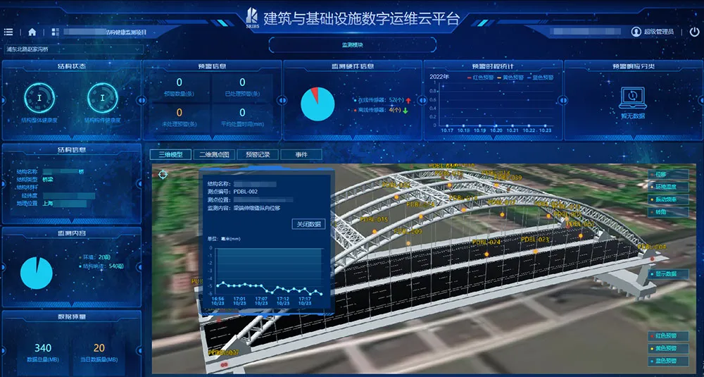 上海建科院獲獎項目“基于數(shù)字孿生的橋梁運營安全檢測與評估管控技術(shù)”。該項目主要通過橋梁檢測數(shù)字化終端app、橋梁巡檢無人機對橋梁表觀信息進(jìn)行快速采集,使用最小參數(shù)快速3D建模和多視角建模方法實現(xiàn)橋梁三維可視化建模,采用機器視覺技術(shù)實現(xiàn)自動病害識別與評估,最終實現(xiàn)檢測報告的自動生成與三維數(shù)字孿生交付,助力橋梁檢測行業(yè)數(shù)字化轉(zhuǎn)型提升。