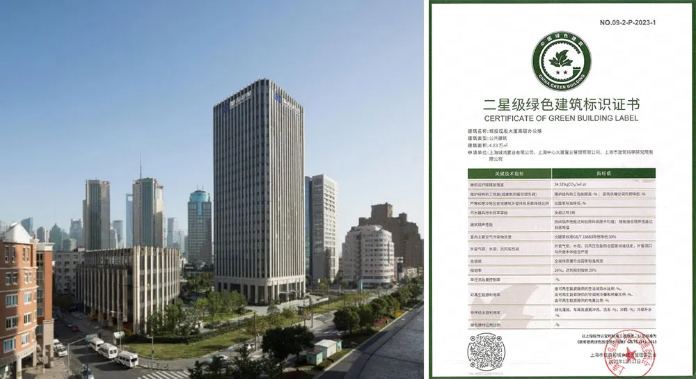 2023年,上海市共有四個項目獲得綠色建筑評價標識,其中上海建科院服務的城投控股大廈高層辦公樓和銀科控股總部商辦項目雙雙獲得二星級綠色建筑運行標識。