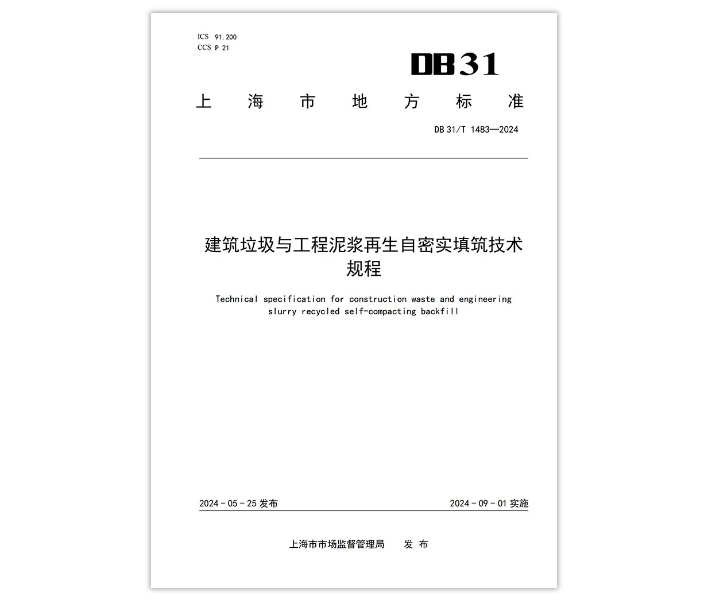 近日,由上海市建筑科學研究院有限公司聯合上海城建物資有限公司、北京建工資源循環利用股份有限公司等單位編制的上海市地方標準《建筑垃圾與工程泥漿再生自密實填筑技術規程》(DB 31/T 1483—2024)已經上海市市場監督管理局批準發布,將于2024年9月1日起實施。