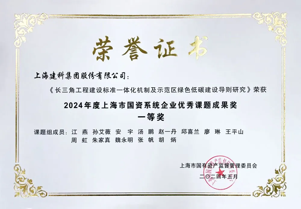 經(jīng)過評審專家對91項課題的初評層層遴選和入圍課題的現(xiàn)場答辯復評,由上海建科集團牽頭,華建集團和上海建工集團共同參與的課題《長三角工程建設標準一體化機制及示范區(qū)綠色低碳建設導則研究》最終榮獲“2024年度上海市國資委系統(tǒng)企業(yè)優(yōu)秀課題成果一等獎”。