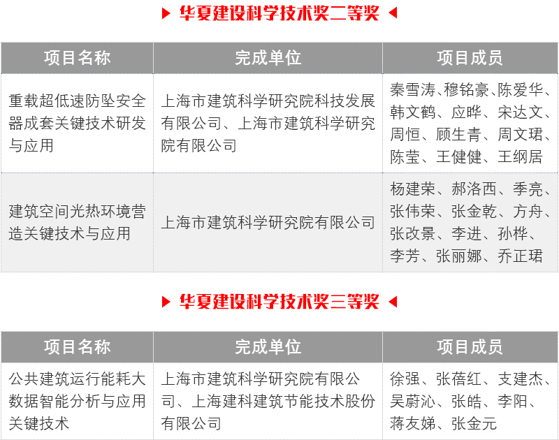 2021年1月8日,華夏建設科學技術獎勵委員會發布“2020年度華夏建設科學技術獎”授獎公告,上海市建筑科學研究院有限公司及下屬子公司承擔的項目共獲得6項華夏建設科學技術獎,其中二等獎4項、三等獎2項。