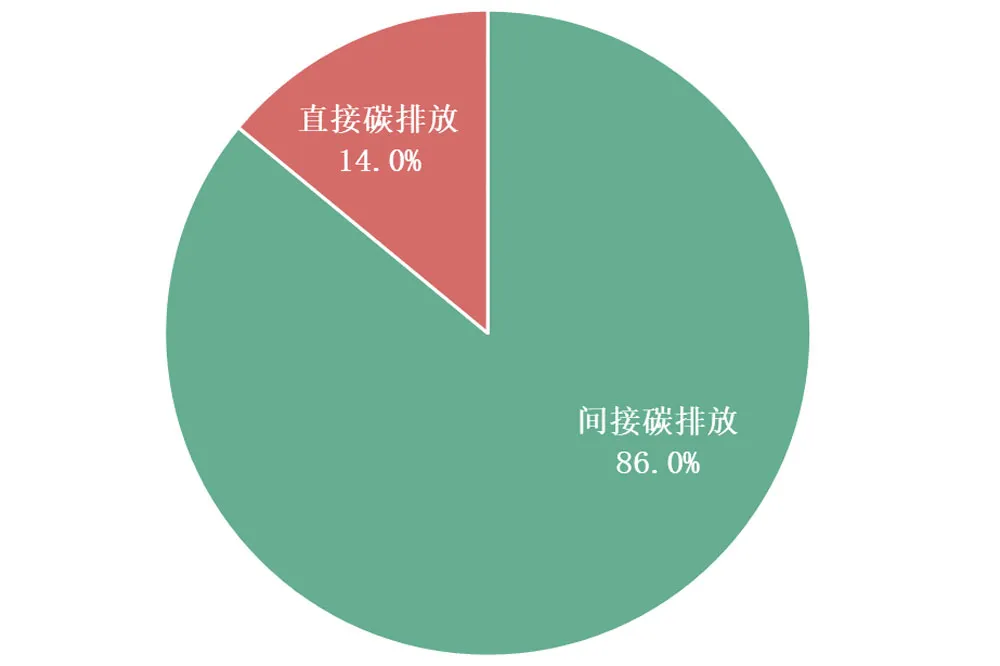 2023年,與能耗監測平臺聯網的公共建筑年總碳排放量為514.2萬噸二氧化碳(萬tCO?),其中直接碳排放72.1萬tCO?,由燃燒天然氣產生;間接碳排放442.1萬tCO?,由電力使用產生。目前聯網公共建筑間接碳排放量占比為86.0%。