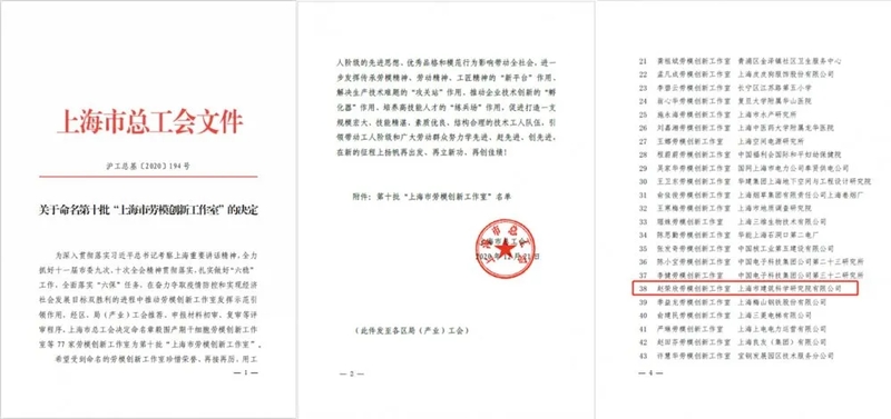 近日,上海市總工會宣布了命名77家勞模創新工作室為第十批“上海市勞模創新工作室”的決定,上海市建筑科學研究院有限公司“趙榮欣勞模創新工作室”成功入選!