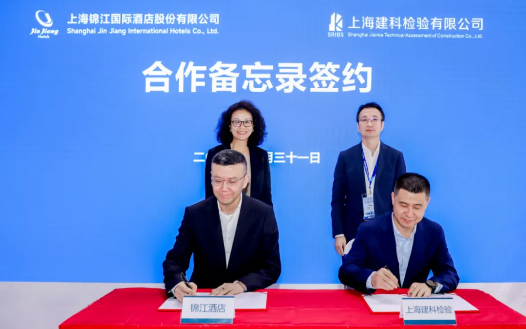 上海建科檢驗公司整合優勢服務資源,組建城市運營部,城博會期間,與錦江酒店在企業展臺現場簽署合作備忘錄,為城市酒店的運行質量、安全、衛生和健康提供保障,李向民與錦江國際集團副總裁周維共同見證簽約。