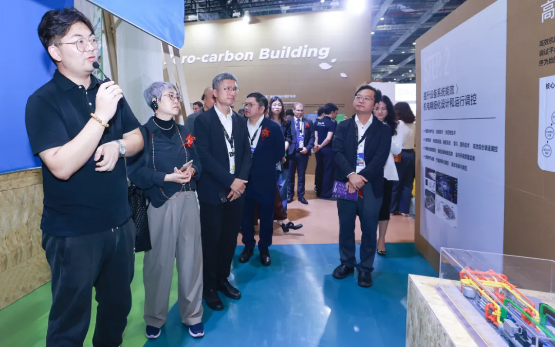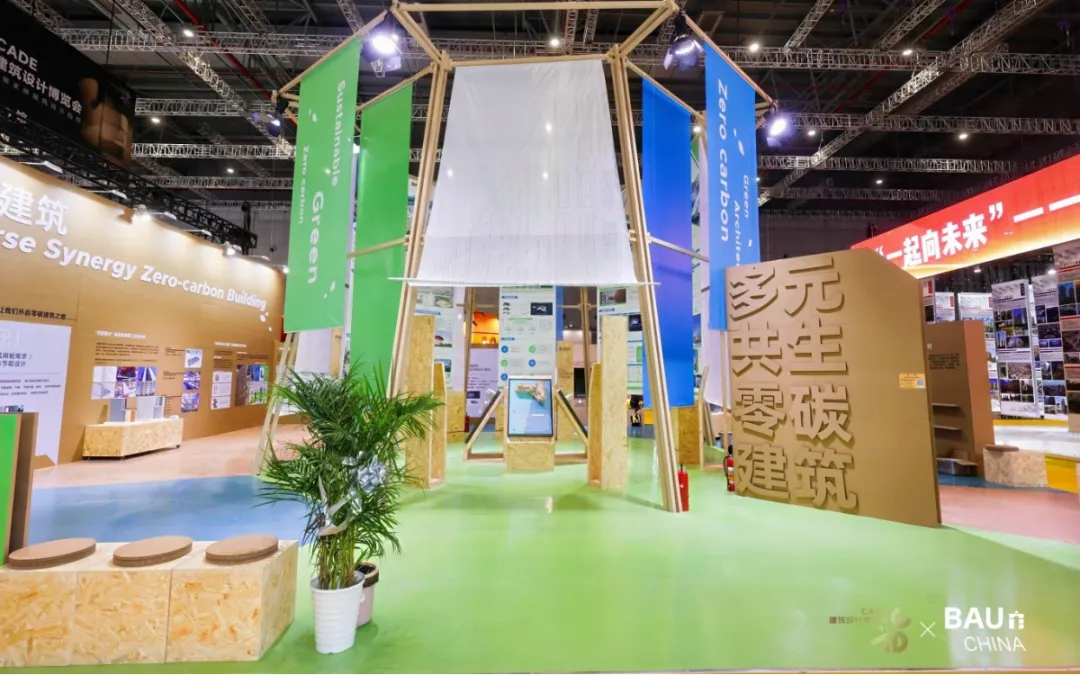 展區展示了來自北京、上海、溫州、新疆、白俄羅斯、薩摩亞等不同氣候區的零碳建筑案例,帶來了最新的節能圍護系統,高效機電系統,可再生能源建筑應用系統,建筑碳計量及交易體系等技術產品,全方位詮釋多元共生、綠色低碳、可持續發展的建筑理念,充分展示建筑師引導、實施運營多元協同下的低碳設計成果。