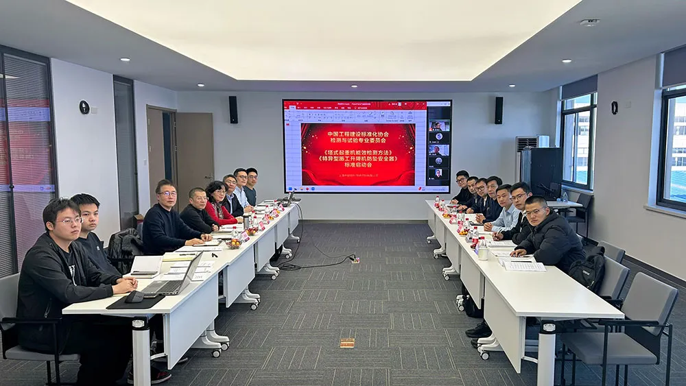 近日,由上海市建筑科學研究院有限公司主編的中國工程建設標準化協(xié)會標準《塔式起重機能效檢測方法》、《特異型施工升降機防墜安全器》編制組成立暨第一次工作會議在上海建科金山園區(qū)召開。中國工程建設標準化協(xié)會檢測與試驗專業(yè)委員會秘書長王景賢,秘書王紫瀟出席會議。上海建科院資深總工程師陳愛華,機械所黨支部書記兼所長韓文鶴及機械所班子、主參編單位代表近20人參會。本次會議采用線上線下相結合的形式,機械所總工程師王云飛主持會議。