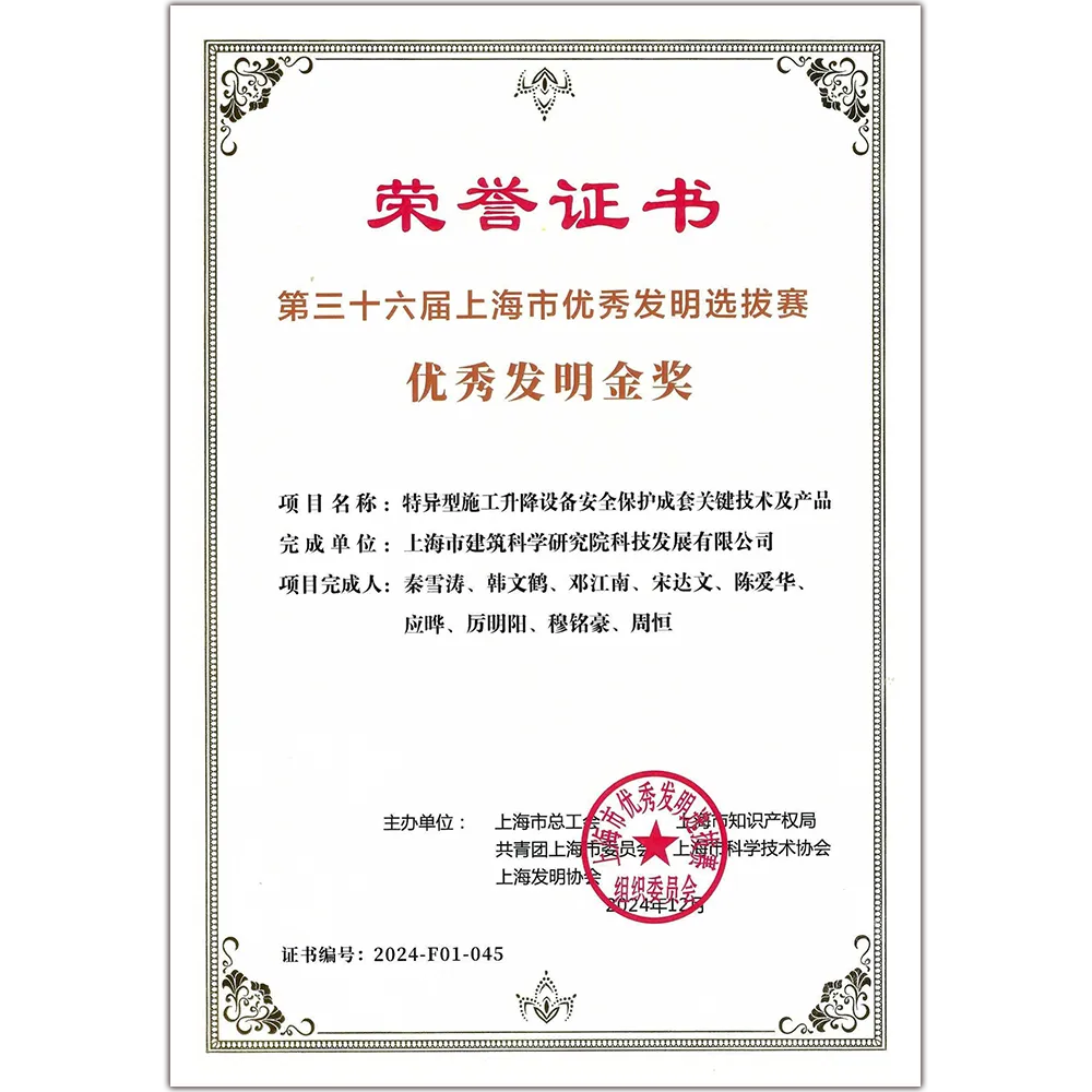 《特異型施工升降設(shè)備安全保護(hù)成套關(guān)鍵技術(shù)及產(chǎn)品》