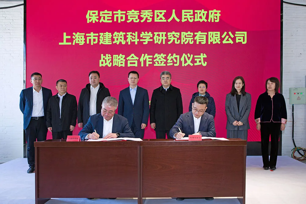 2月8日,上海市建筑科學(xué)研究院有限公司(以下簡(jiǎn)稱(chēng)”上海建科院”)與保定市競(jìng)秀區(qū)人民政府戰(zhàn)略合作簽約暨上海建科院河北分公司揭牌儀式在競(jìng)秀區(qū)元宇宙產(chǎn)業(yè)園舉行。保定市競(jìng)秀區(qū)委書(shū)記劉相偉,區(qū)長(zhǎng)付建賓,市住建局副局長(zhǎng)馬輝,競(jìng)秀區(qū)委常委、區(qū)委辦公室主任高建坤,副區(qū)長(zhǎng)孔震,區(qū)政協(xié)副主席平國(guó)弘,上海建科咨詢(xún)集團(tuán)市場(chǎng)發(fā)展部總經(jīng)理葛曹燕,上海建科院黨委書(shū)記、執(zhí)行董事楊建榮,黨委副書(shū)記、總經(jīng)理趙榮欣等出席活動(dòng)。競(jìng)秀區(qū)城市更新領(lǐng)導(dǎo)小組成員單位和上海建科咨詢(xún)集團(tuán)京津冀區(qū)域各單位代表,共50余人參加此次活動(dòng)。活動(dòng)由上海建科院副總經(jīng)理邢云主持。