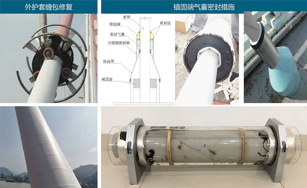 ● 高分子纏包帶防護系統:研發了特種高分子纏包材料以及三層復合纏包帶結構,有效修復了索體護套老化及應力開裂問題,實現卓越的防腐防水性能并攻克界面粘接難題。
