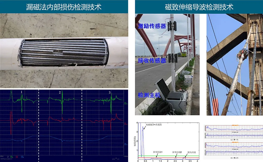 ● 內部銹蝕無損檢測技術:索結構內部的鋼絲銹蝕是威脅橋梁安全的重要隱患,漏磁法和磁致伸縮導波法作為兩種先進的非破壞性檢測技術,為索體內部損傷識別提供了有效解決方案。