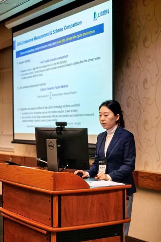 集團運營管理部和上海建科院的相關負責人和學者代表共同參加了本次大會,其中,張蓓紅博士和孫昀燦助理研究員在論壇環節展示了集團在城市建筑領域碳排放預測和社區層面低碳實踐的相關研究成果。