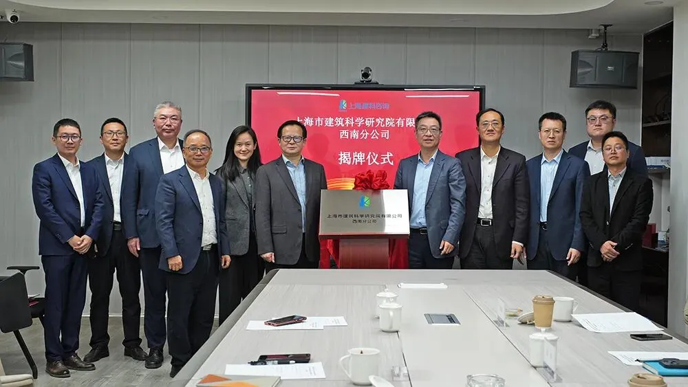 在與會領導的共同見證下,趙榮欣與劉雄分別代表雙方公司正式簽署戰略合作協議。楊建榮、趙榮欣共同為上海建科院西南分公司揭牌,標志著建科院業務輻射西南區域戰略支點正式落地。