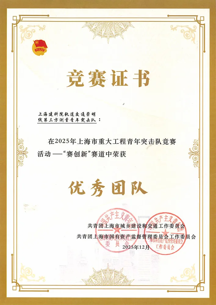 活動以立功競賽為載體,圍繞賽創新、賽效益、賽質量、賽安全四個賽道展開角逐,激發青年在工程建設中展現新作為、貢獻新力量。上海市建筑科學研究院有限公司(以下簡稱“建科院”)軌道交通崇明線第三方測量青年突擊隊在賽創新賽道中榮獲“優秀團隊”。