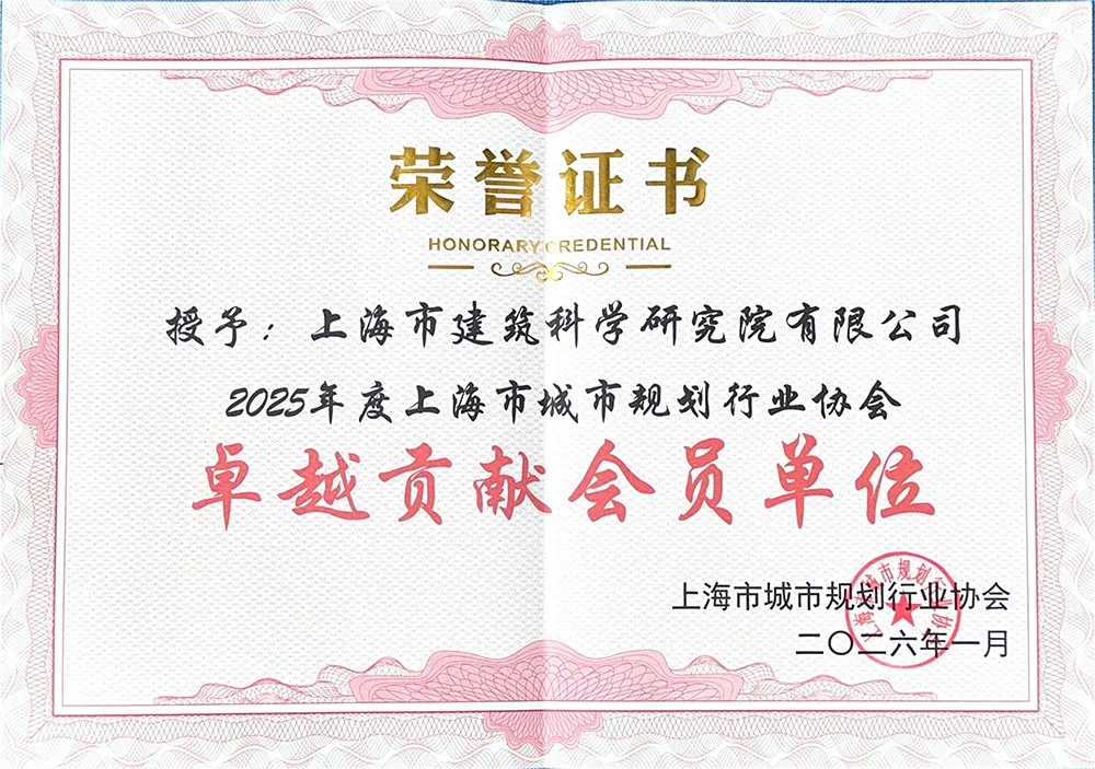 上海市建筑科學(xué)研究院有限公司(以下簡稱“建科院”)作為市規(guī)劃協(xié)會理事單位,榮獲“2025年度卓越貢獻(xiàn)會員單位”榮譽(yù)。