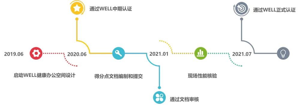 上海建科院于2019年上半年啟動了十號樓健康室內空間的專項設計,秉持員工關懷和健康人本的核心理念,通過引入WELL健康人居技術體系,開展了從設計、施工、采購、調適和核驗的全流程閉環管理,打造以人為本、綠色低碳、智慧高效的新一代辦公環境樣本。今年7月,項目順利通過了由第三方開展的現場性能核驗,最終以106分的高分通過了WELL鉑金級正式認證,為歷時兩年的健康空間專項工作畫上了圓滿的句號。