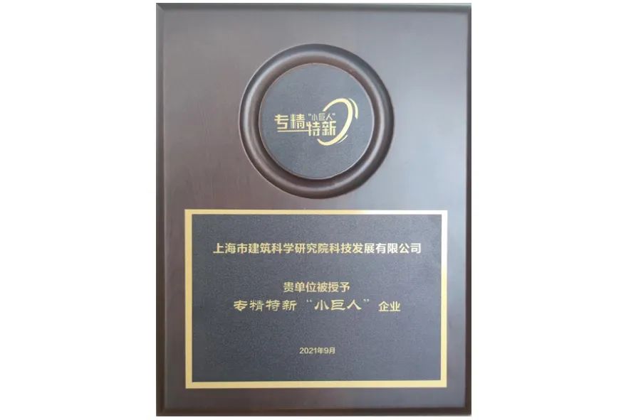 會上,11家金山區(qū)企業(yè)被授予2020年度國家級專精特新“小巨人”企業(yè)稱號,上海市建筑科學研究院科技發(fā)展有限公司作為其一,獲得表彰。