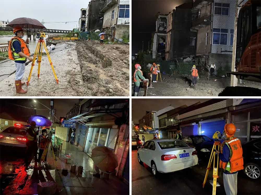 上海建科院監(jiān)測團隊充分發(fā)揮了黨員的先鋒模范作用,抵達現(xiàn)場后,冒著大雨踩著泥漿,對險情現(xiàn)場和周邊進行了詳細的踏勘,調(diào)查了險情周邊房屋的建筑結(jié)構(gòu)特點、質(zhì)量狀況、變形敏感程度、現(xiàn)場布設(shè)條件等情況。