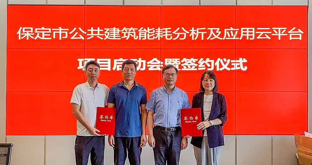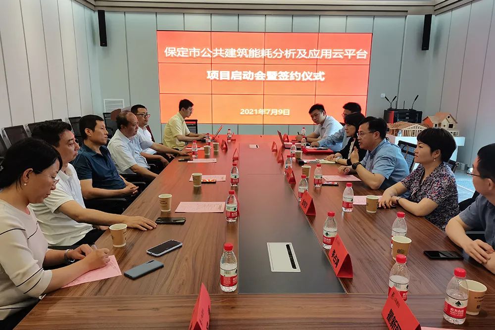 同期,上海建科院在保定市綠色建筑發展中心召開了保定市公共建筑能耗分析及應用云平臺項目啟動會暨簽約儀式,保定市住房和城鄉建設局副局長楊濤、建筑節能與科技處處長李振川,保定市機關事務管理局房管與節能處三級主任科員趙艷松,保定市綠色建筑發展中心主任張順、綜合信息科科長和博出席并見證了簽約儀式,建科院總經理蔣利學、副總經理張蓓紅及上海建科項目團隊共同參加。